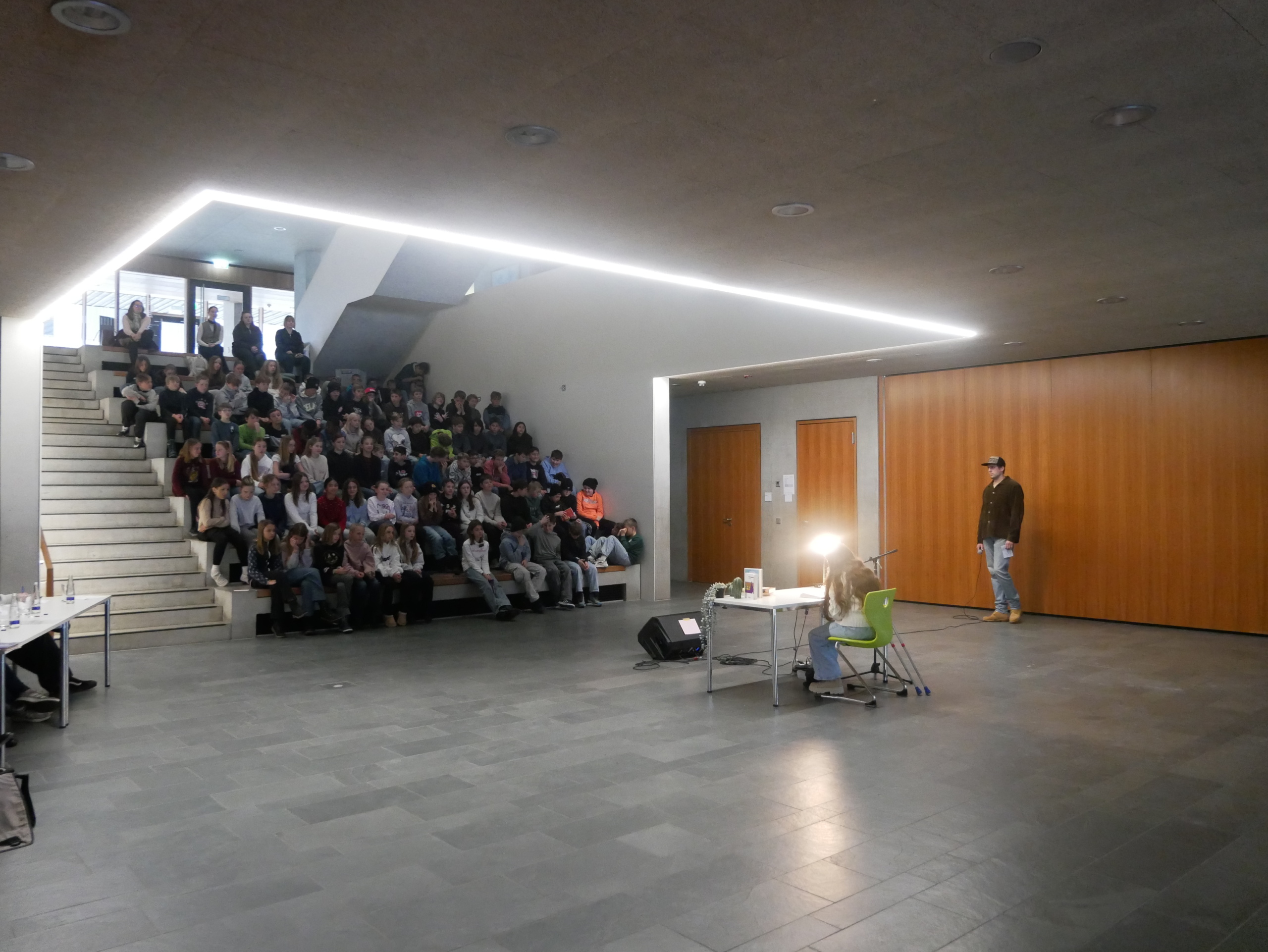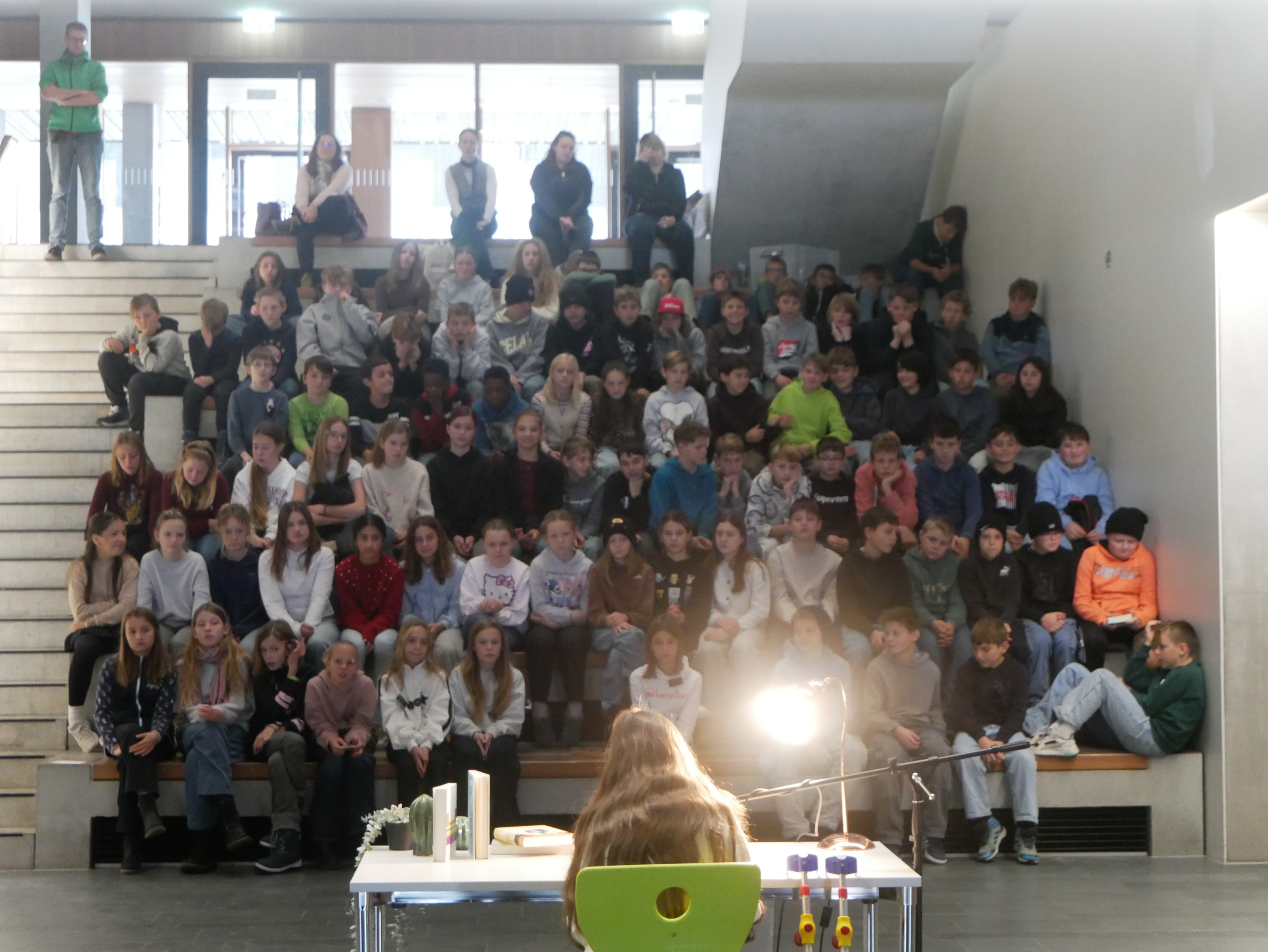 Am Freitag, den 21.11, war wieder der Vorlesewettbewerb in der Aula nur für die 6. Klassen. Es traten pro Klasse ein Kandidat an, der in seiner Klasse ausgewählt wurde.