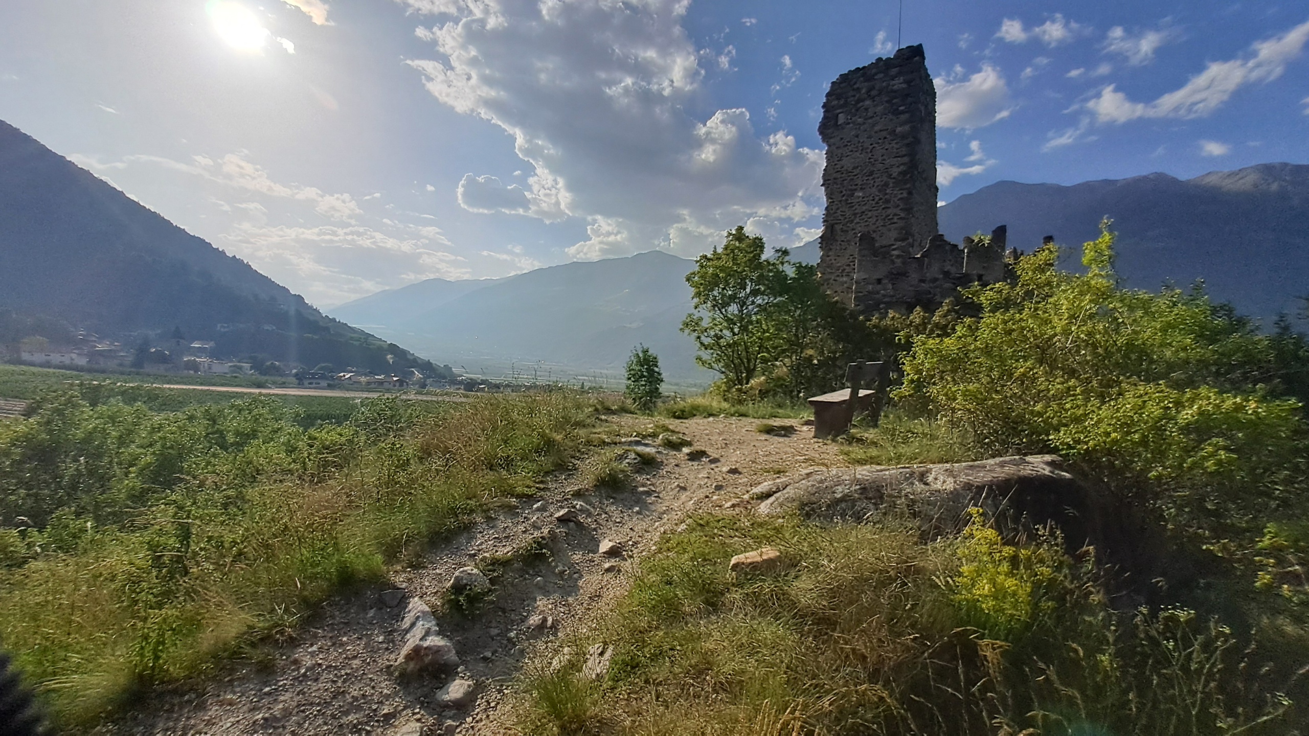 Etwa 3 Stunden fahrt von Murnau entfernt liegt die Gemeinde Latsch im Vinschgau, dem westlichen Teil Südtirols. Und wer Latsch hört, der denkt als allererstes an steile Trails und weite Bergtouren. Vor mehr als 18 Jahren hat man hier schon Trails für MTBs gebaut. Lange bevor dieser Boom Deutschland erreicht hat. Wer dabei den „Sonnenberg“ von Latsch mit der St. Martin-Bahn hochfährt, der findet auch direkt sehr anspruchsvolle Trails im Bereich S2 und S3. Nichts für Anfänger und ja, wer die Dinger richtig runterfährt, der wird wohl mit dem ein oder anderen Materialschaden rechnen müssen. Aber auch an diesem Berg wird klar, wie die Gemeinde ein Nebeneinander von Natur, Tourismus und Sport schafft. Wer mit der Bahn die 1000 hm inklusive Bike fahren möchte, der kann das nur zu bestimmten Zeiten und am Nachmittag auch nur für geführte Touren. Somit vermeidet man eine „Übervölkerung“ des Berges und zu viel „Anarchie“ durch Biker. Latsch ist in weiten Teilen aber fast nur etwas für Experten. Wer eine Tour mit Einsteigerpotenzial machen will, der nimmt sich am besten den Latscher Trailzauber vor. Gute 30 Kilometer in schattigem Gelände. Einige Abschnitte muss man rauf, aber es geht auch gut runter. Vor einigen Jahren war dieser Trail mal mit einem S1 für Anfänger kategorisiert worden. Mittlerweile muss man sagen: S2 ist hier angemessen. Es gibt viele Stellen, die eher einem Steig ähneln. Richtig „flow“ kommt erst am Ende auf, wenn man auf die Burg Obermontani zurollt. Und trotzdem bleibt die Strecke ein Klassiker, die auch zeigt, wie man Wanderer und Mountainbiker zusammenbringt. In Latsch sind überall Wege mit Trail-Tolerance ausgeschrieben. Ein Begriff, der in Deutschland wohl eher ein Fremdwort ist. Wanderer und Radfahrer auf einem Weg? Unvorstellbar, aber es klappt – nicht nur auf dem Latscher Trailzauber