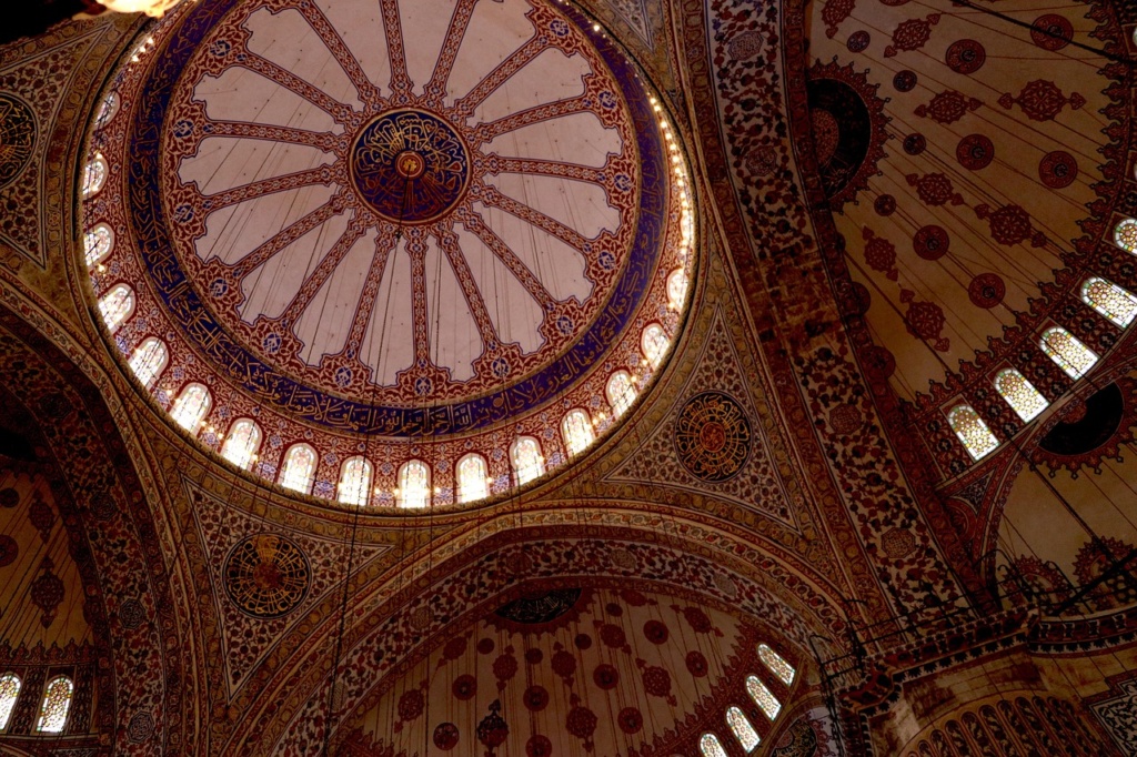Eine Moschee ist ein islamisches Gebetshaus und ein Ort für Gemeinschaft, so ähnlich wie die Kirchen hier bei uns in Deutschland, sie sind sehr offen gebaut. Es gibt eine besondere Wand (Qibla) mit einer kleinen Gebetsnische (Mihrab) und einen Hof (Sahn), in diesem werden rituelle Waschungen durchgeführt. Jedoch begeisterten mich meistens die riesigen Kuppeln und Minarette die inspiriert von antiken Vorbildern gemalt wurden. Meisten wurden die Farben Blau, Grün und Gelb hergenommen da diese das Himmelszelt und das Paradies darstellen sollten.